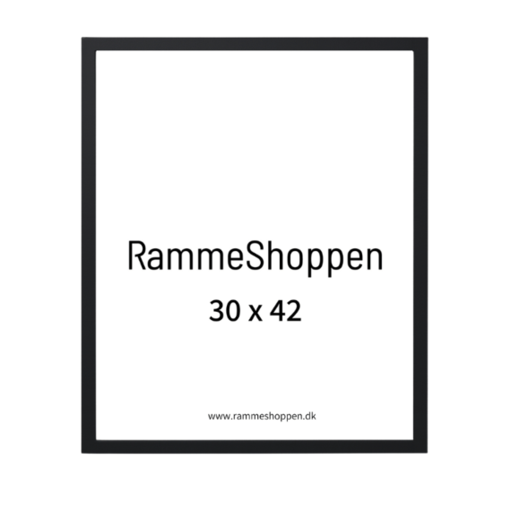 Diese schöne, schlichte Rahmen in glatter, schwarzer seidenmatter Ausführung im Format 29,7 × 42 cm, auch bekannt als A3, wird in unserer Werkstatt in Dänemark handgefertigt.